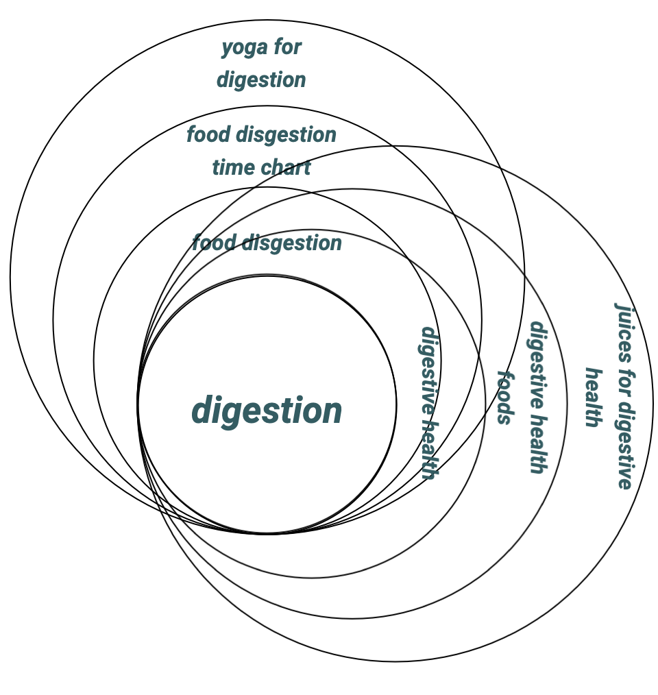 It’s better to allow this keyword gathering process to go deeper and wider than just staying safe with only “digestion” related queries like most keyword, less holistic, keyword research strategy.